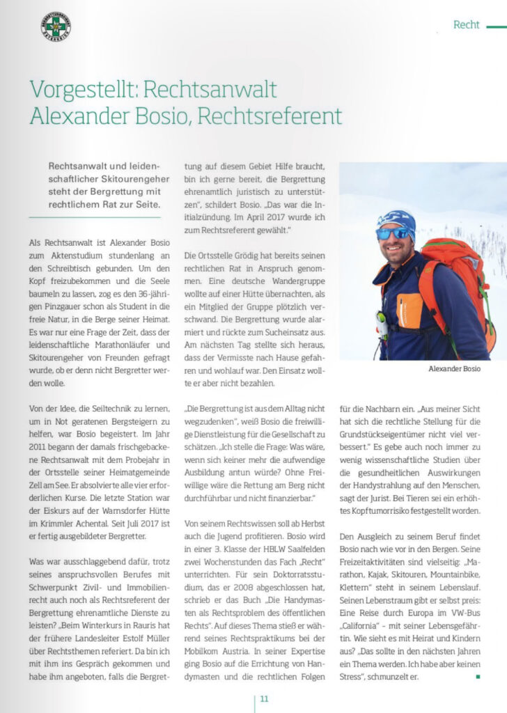 Bergrettungs- Fördererheft 2018 „Vorgestellt Rechtsanwalt Alexander Bosio, Rechtsreferent“